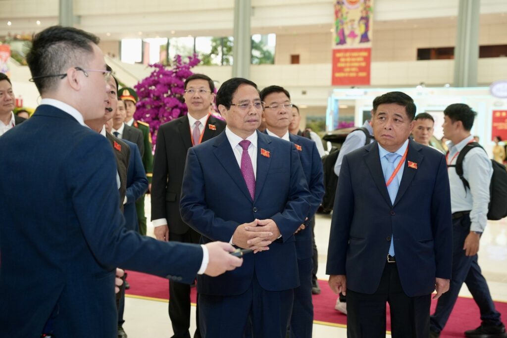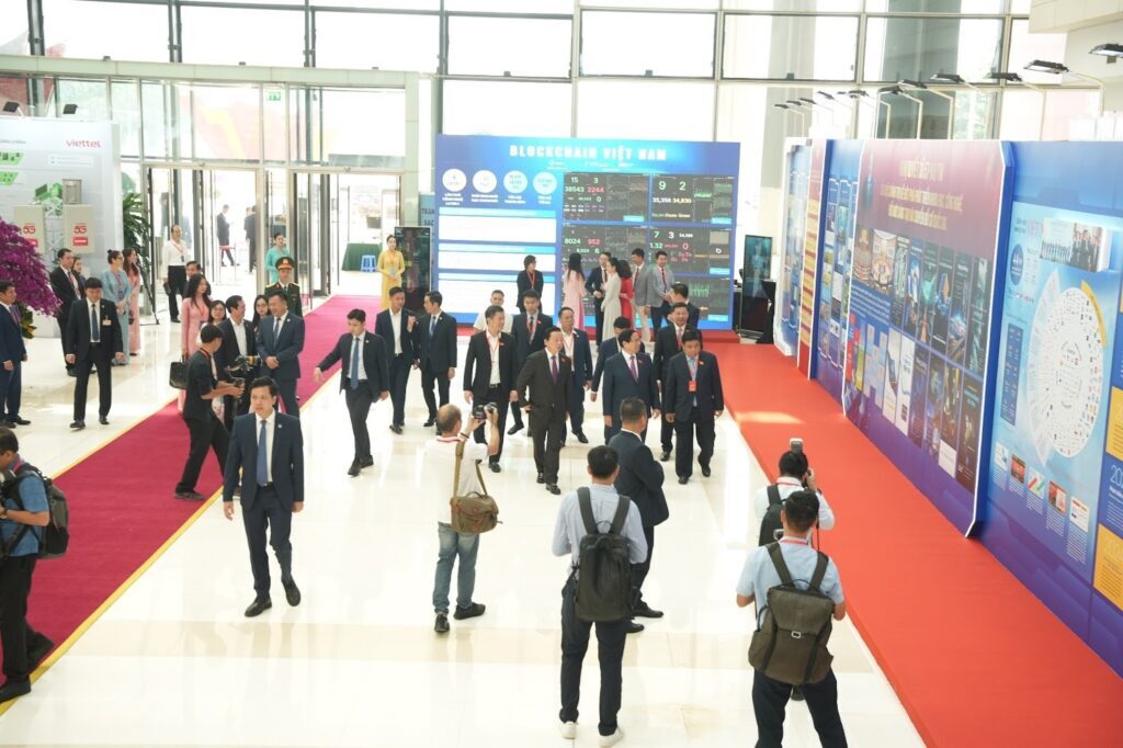 Thủ tướng Phạm Minh Chính và các quan chức Chính phủ thăm khu trưng bày Mạng Dịch vụ Đa chuỗi Blockchain Việt Nam (VBSN).